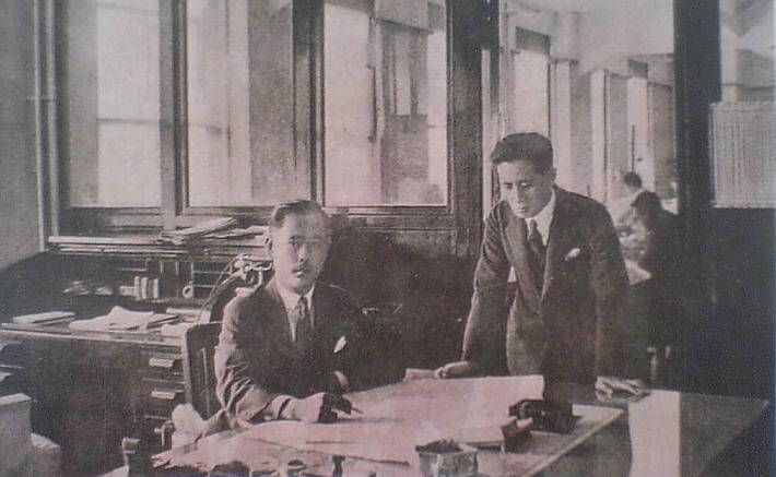 1916年(大正5年)に独立して、大阪に自身の設計事務所を構えます。1920年から1921年まで欧米視察に出かけて、多くの歴史的な建築物と共に当時最新のオフィスビルを直に見る機会を得たのが、その後の設計に多くの影響を与えます。
